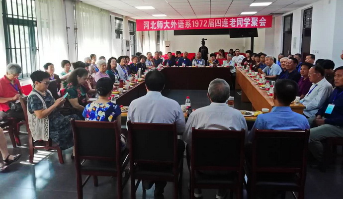 2019年6月1日,我校外语系1972届四连毕业生聚会在同人漫画 106报告厅成功举办,五十名老同人漫画 在毕业四十七年后欢聚一堂。校长刘敬泽,同人漫画 党委书记王新平、院长唐丽萍出席座谈会,1972届四连连长、我校前副校长岳望山教授主持座谈会。
