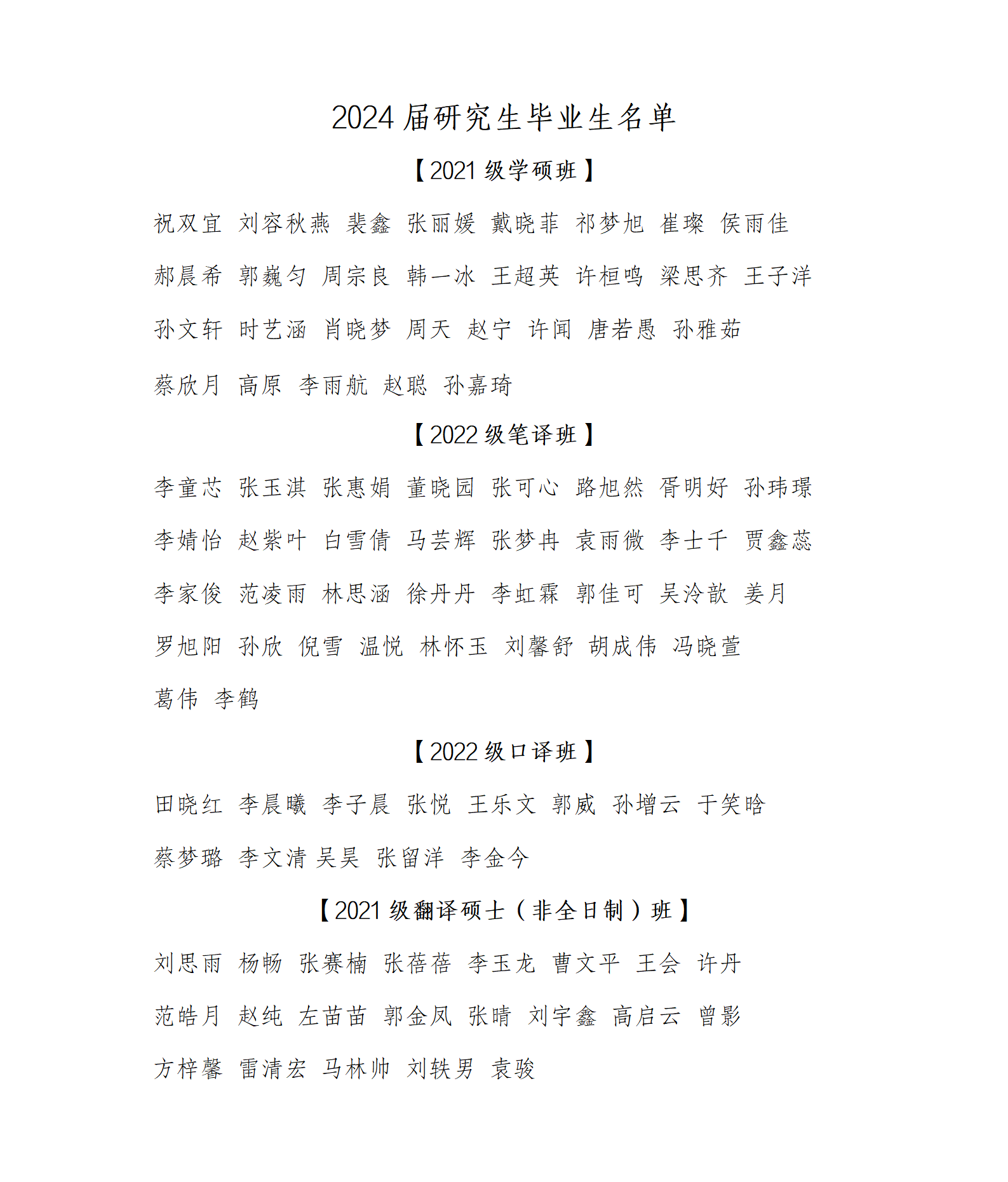 2024届研究生毕业生名单