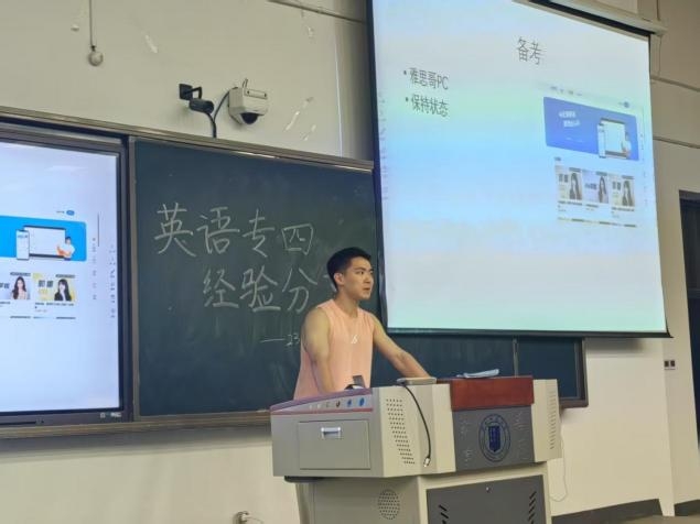结合自身备考心得,他们分别围绕专业四级考试的题型特点、复习规划、答题技巧等方面展开分享,详细分析了听力、阅读、写作等各题型的命题规律,分享了高效的时间管理方法和针对性的训练策略,提醒同学们在备考中注重基础积累与真题练习相结合,为大家理清了备考思路,提供了宝贵的实战经验。