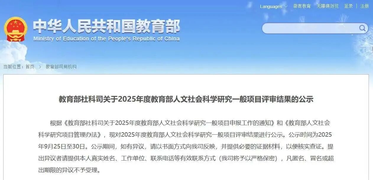 近日,教育部社会科学司公示了2025年度教育部人文社会科学研究一般项目立项结果,其中高校辅导员研究专项任务共立项212项,我院辅导员陈丽主持的《高校思想政治教育数字化转型的风险挑战及应对策略研究》成功获批立项。