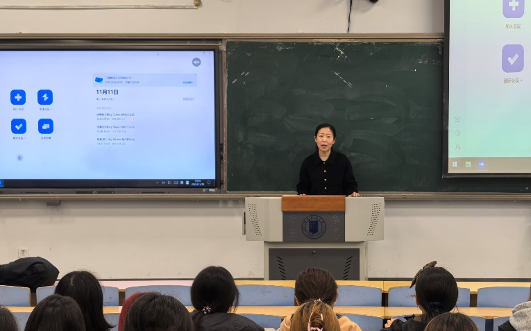 李丽辉老师以翻译(中外合作办学)项目负责人及班主任的双重身份,为同学们系统介绍了项目的整体规划与学习要求。她特别强调了几个关键的学习环节:选修课需结合个人发展方向审慎选择,日常作业要认真对待,考试则应全力以赴争取优异成绩。这些不仅是顺利通过学业考核的保障,更是为未来留学深造打下坚实基础的宝贵建议。
