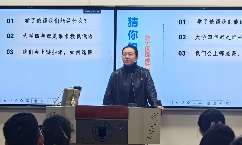 俄语系主任王佳宁老师为同学们进行了一场深入浅出的专业导览。她围绕培养方案、课程设置、专业特色及就业前景等话题进行了系统解读,为同学们的新学期征程提供了一份清晰的“导航图”,帮助大家明确目标,坚定信心。